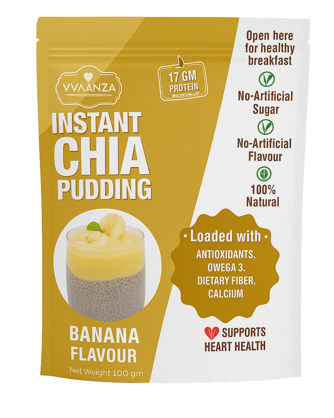 Vyaanza Banana Instant Chia Pudding is a no-cook, nutrient-packed blend made for today’s fast-paced, health-conscious lifestyle. Just add water, stir, wait 10 minutes, and enjoy!